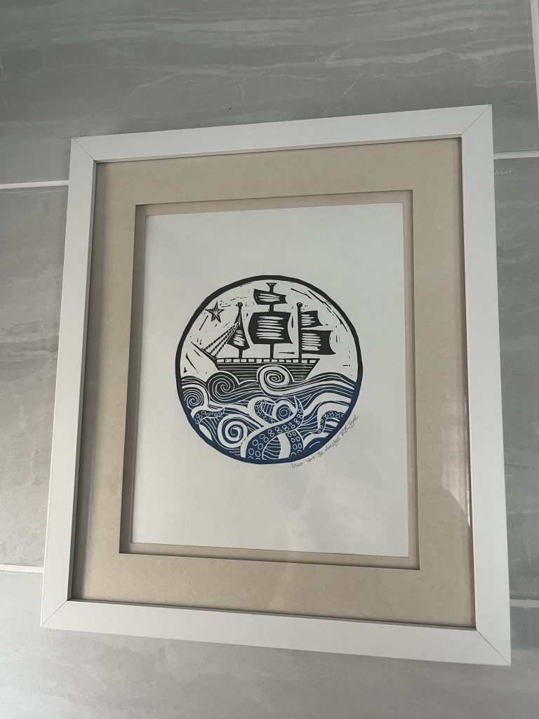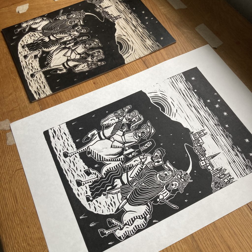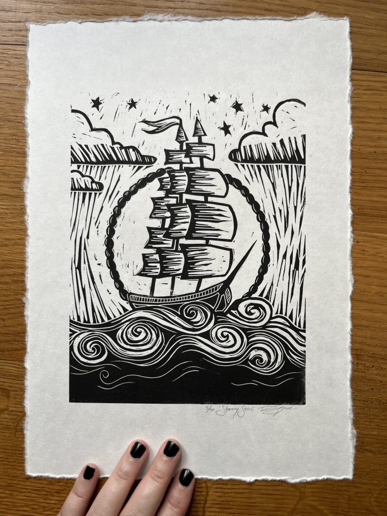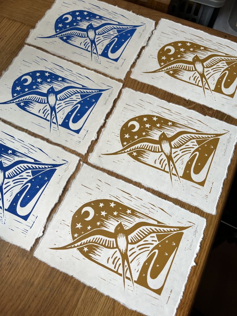 I love to draw and paint with watercolours, but in the last few years I have enjoyed experimenting with lino cut printing. As a big medieval history nerd, this craft has a lovely, old fashioned feel to it. Planning, carving and printing a design takes a lot of time and care, and seeing the finished print is always such a joy.